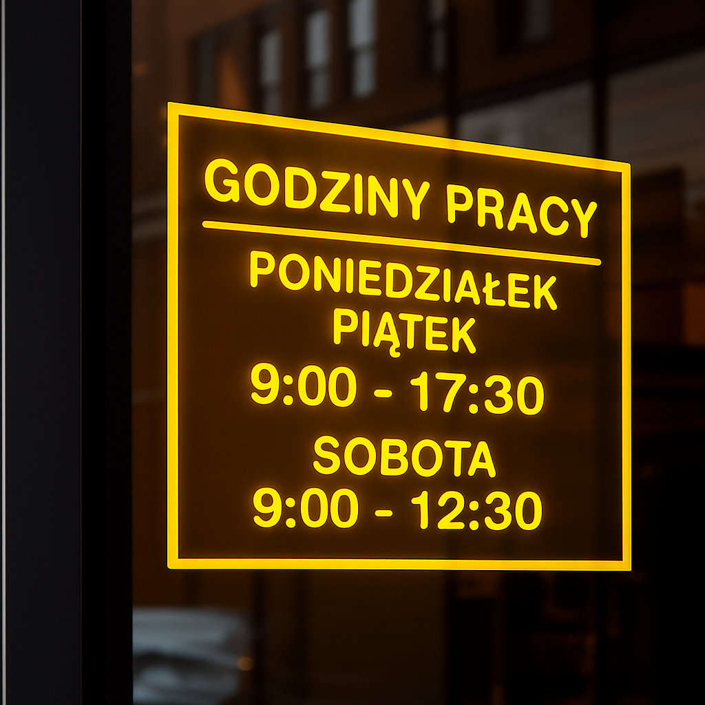 Spersonalizowana naklejka godziny otwarcia