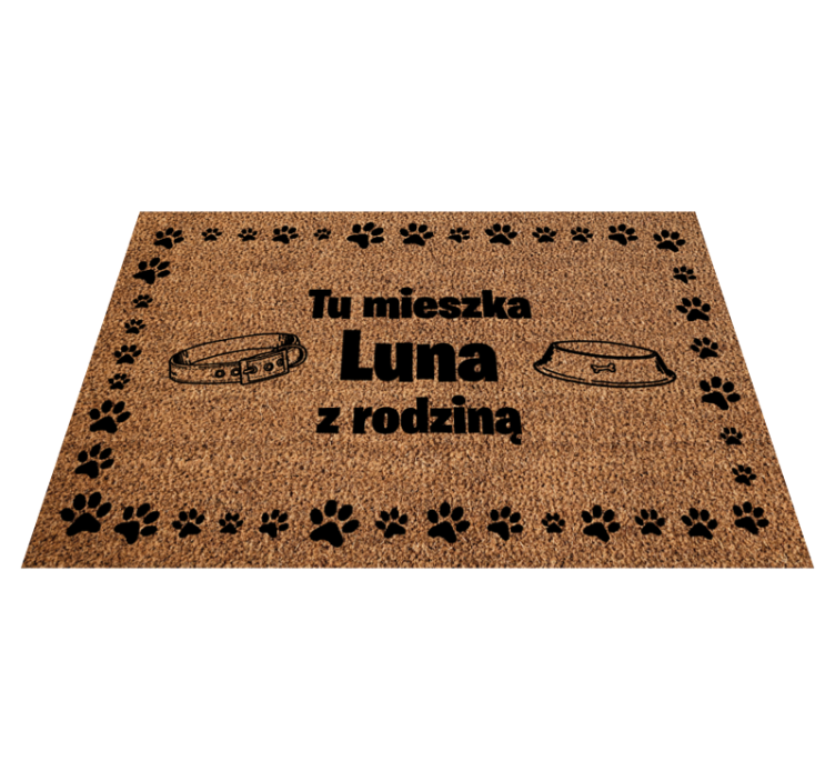 Dywan winylowy z imieniem Tu mieszka pies z rodziną