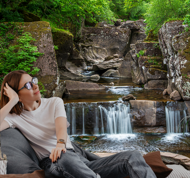 Numer referencyjny: F12155Scena przedstawia urzekający wodospad spadający po surowych skałach, otoczony żywą zielenią. Ten spokojny krajobraz zaprasza do relaksu, ukazując piękno natury w jej najczystszej formie, co czyni go idealnym miejscem do odnowy i spokoju.