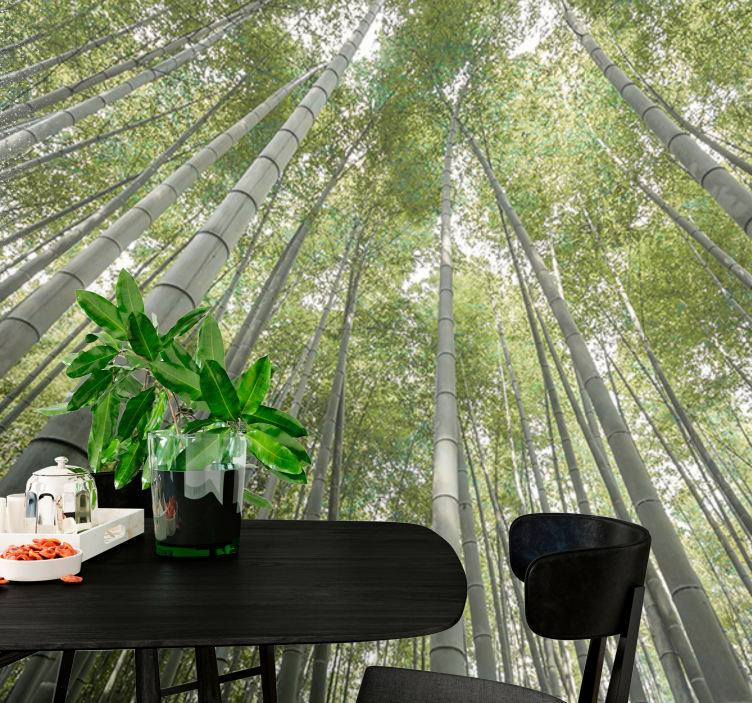Numer referencyjny: F12097Projekt przedstawia wysoką bambusową dżunglę widzianą z dołu, ukazując wysokie, smukłe łodygi bambusa sięgające w górę. Lush zielone liście delikatnie filtrują światło, tworząc spokojną atmosferę, idealną dla tych, którzy szukają połączenia z naturą.