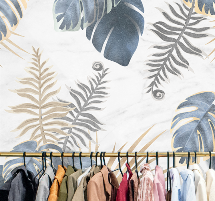 Numer referencyjny: F12220Elegancki design z różnorodnymi liśćmi i roślinnością w połączeniu kolorów. Złożony układ uchwyca istotę natury, prezentując kombinację liści tropikalnych i paproci, tworząc orzeźwiającą i spokojną atmosferę.