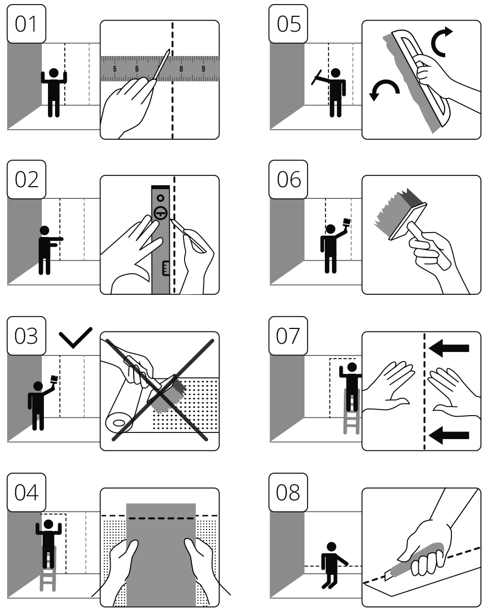 Materiał jest w stanie pokryć drobne niedoskonałości na ścianie, jednak głębsze pęknięcia/rowki powinny zostać wypełnione i wygładzone. Konieczne jest również usunięcie wszelkich pozostałości po poprzednich tapetach/fototapetach.