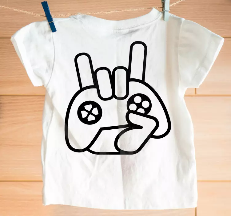 Numer referencyjny: T4928Ten zabawny wzór przedstawia kontroler do gier z ręką wykonującą gest rocka. Idealny dla dzieci, które uwielbiają gry, łączy w sobie elementy zabawy z modnym wyglądem. Doskonały na codzienne noszenie, ten design wyraża entuzjazm i radosnego ducha w unikalny sposób.