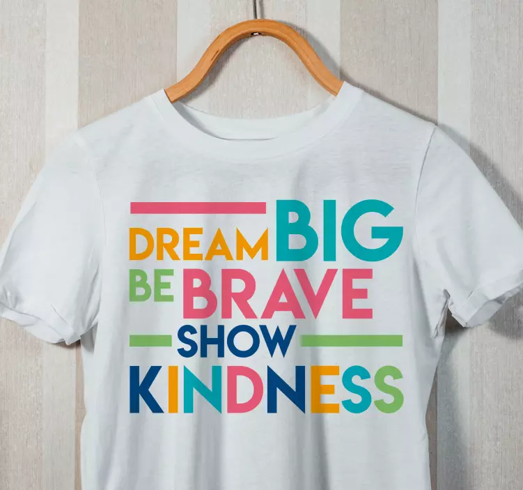 Numer referencyjny: T4142Ten projekt zawiera inspirujące słowa w żywych kolorach, zachęcające do pozytywności i życzliwości. Przekaz, stworzony z radosną typografią, trafia do odbiorców, co czyni go idealnym do pielęgnowania wspierającej atmosfery. Doskonały dla tych, którzy wierzą w szerzenie nadziei i zachęty poprzez swój styl.
