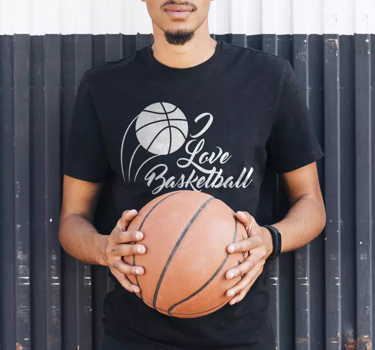 Projekt to fraza tekstowa, która mówi "kocham koszykówkę", ma pięknie wykaligrafowane czcionki tekstowe, jest przedstawiana wraz z ręcznie rysowaną ilustracją koszykówki, koszykówką z efektem, jest jednokolorowa i pozwala się nią cieszyć w innych wariantach kolorystycznych.