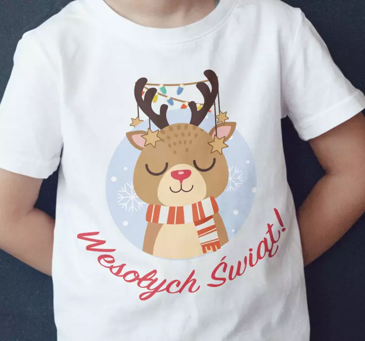 Zdobądź tę kreskówkową brązową koszulę reniferową z czerwonym tekstem.