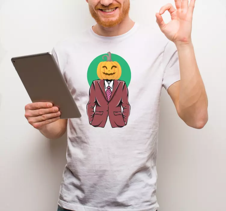 Numer referencyjny: T4758Ten zabawny projekt przedstawia postać w garniturze z głową dyni, doskonale oddając ducha Halloween. Jasne kolory i fantazyjne elementy tworzą radosną atmosferę, co czyni go idealnym na okazje świąteczne. Ciesz się noszeniem tej unikalnej sztuki, która łączy humor z sezonową zabawą.