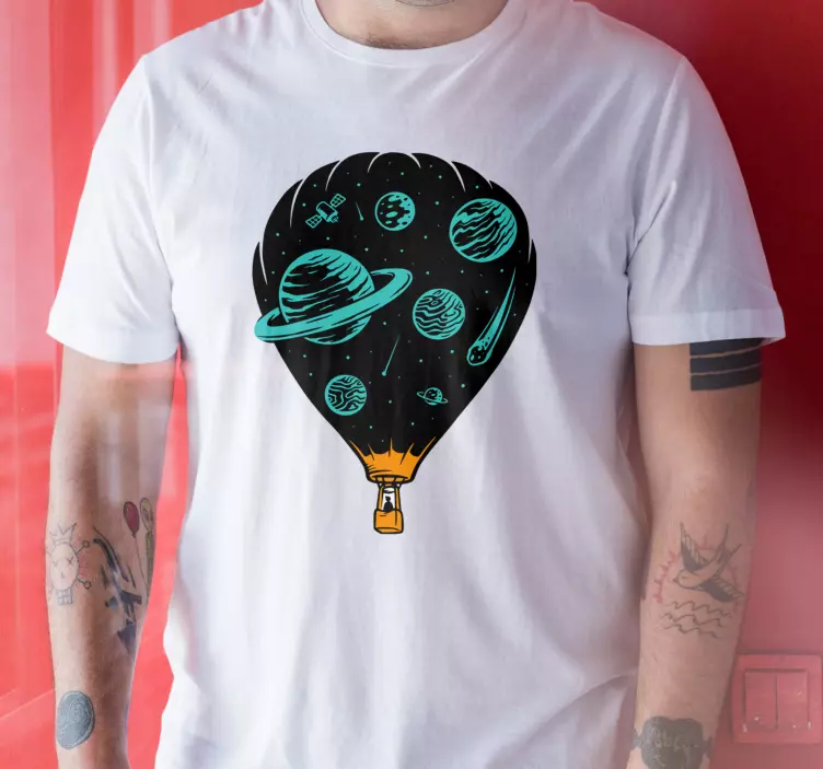 Koszulka przygoda w przestrzeni to niezwykle kolorowy i kapryśny projekt, który przenosi nas w świat kosmicznych podróży. Z elementami balonu na gorące powietrze oraz różnorodnymi planetami, ta koszulka zachwyca ilustracją pełną detali, które pobudzają wyobraźnię. Motyw przestrzeni oraz konceptualistyczny styl sprawiają, że jest to idealny wybór dla każdego, kto pragnie odkrywać nieznane i marzyć o dalekich podróżach w kosmosie!