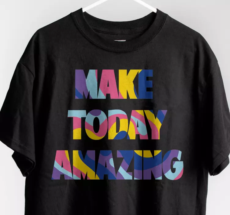 Numer referencyjny: T4900Ten żywy, motywujący tekst zawiera frazę 'Make Today Amazing' w dynamicznej, kolorowej typografii. Grube litery wyróżniają się na ciemnym tle, co czyni go przyciągającym wzrok wyrazem pozytywności i inspiracji, odpowiednim na różne okazje.