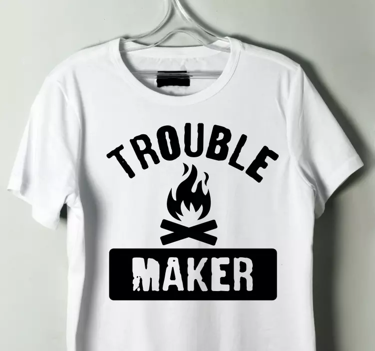 Numer referencyjny: T5448Ten przykuwający wzrok projekt zawiera wyraziste napisy 'Trouble Maker' oraz symbole ognia i ogniska. Jest idealny dla tych, którzy cenią sobie zabawowego i przygodowego ducha. Kontrast czerni na bieli dodaje elementu ekscytacji i łatwo przyciąga uwagę.