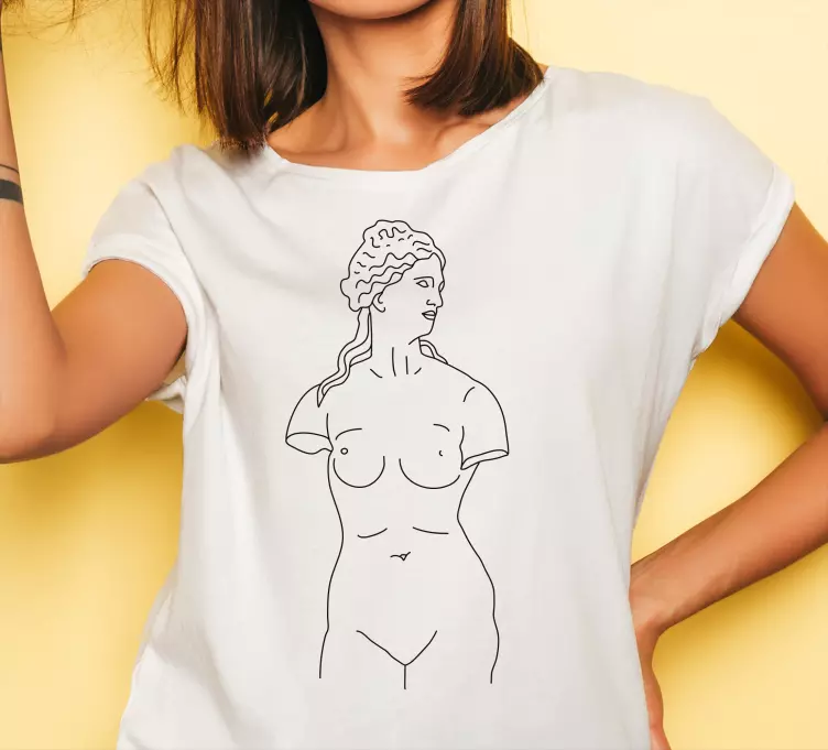 Koszulka z elegancką sylwetką kobiety to wyjątkowy produkt, który przyciąga wzrok swoją artystyczną i minimalistyczną grafiką liniową. Projekt inspirowany starożytną grecką rzeźbą kobiety, przedstawia subtelny portret, który łączy w sobie nowoczesną estetykę z kulturalnym dziedzictwem. To abstrakcyjne podejście do mody sprawia, że ta koszulka jest nie tylko modnym dodatkiem, ale także prawdziwym dziełem sztuki!