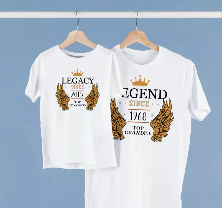 Ta niesamowita koszulka to doskonały sposób na okazanie rodzinnej dumy. Na motywie korona ze skrzydłami i odpowiedni tekst: dziedzictwo od… najstarszego wnuka, legenda od… najstarszego wnuka. Jest personalizowany z wybraną datą. Ten kawałek jest idealnie dopasowaną koszulą dla dziadka i wnuka, która sprawi, że będą wyglądać stylowo i zjednoczeni.