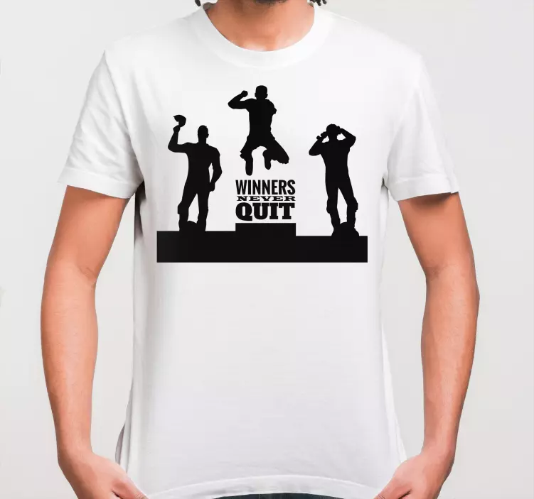 Numer referencyjny: T4890Ten projekt zawiera potężną frazę motywacyjną obok sylwetek triumfalnych postaci w akcji. Obrazowanie uchwyca istotę wytrwałości i sukcesu, co czyni go idealnym dla entuzjastów, którzy celebrują osiągnięcia. Kontrast czerni i bieli dodaje odważnego akcentu do każdej casualowej stylizacji.