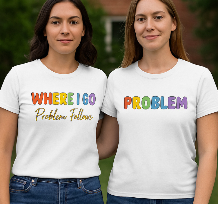 Koszulki dla par lgbt, gdziekolwiek idę, problemy mnie śledzą