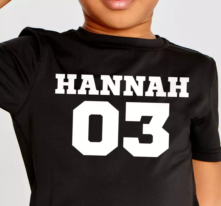Numer referencyjny: T4713Stylowy, spersonalizowany strój dla dzieci, z wyraźnym imieniem i numerem na eleganckim czarnym tle. Idealny dla aktywnych maluchów, ten element łączy komfort z radosnym, sportowym stylem, który wzbogaca garderobę każdego dziecka.