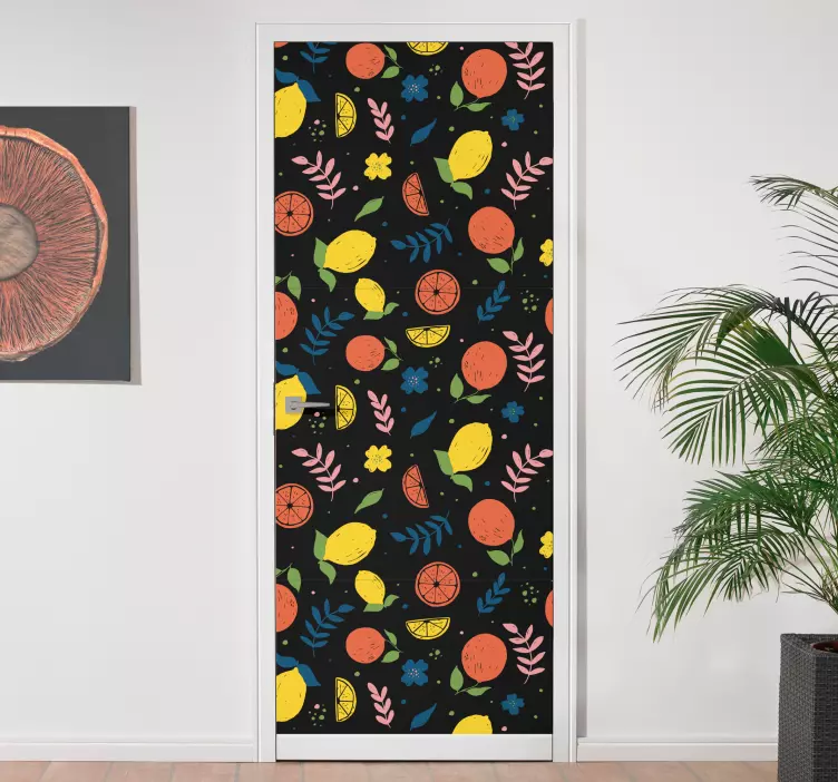 Naklejka na drzwi w kolorowe wzory cytrusowe