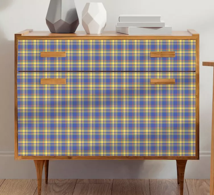 Nasza naklejka na meble w nowoczesny wzór w kratę to doskonałe połączenie stylu i funkcjonalności, które odmieni każde wnętrze! Projekt graficzny tego produktu zachwyca tartanowym wzorem, inspirowanym modnymi tkaninami, które wprowadzą do Twojego domu subtelny, a zarazem geometryczny charakter. Wzór przypominający elegancki pled z bogatą teksturą w pięknych kolorach sprawi, że Twoje meble nabiorą nowego życia!