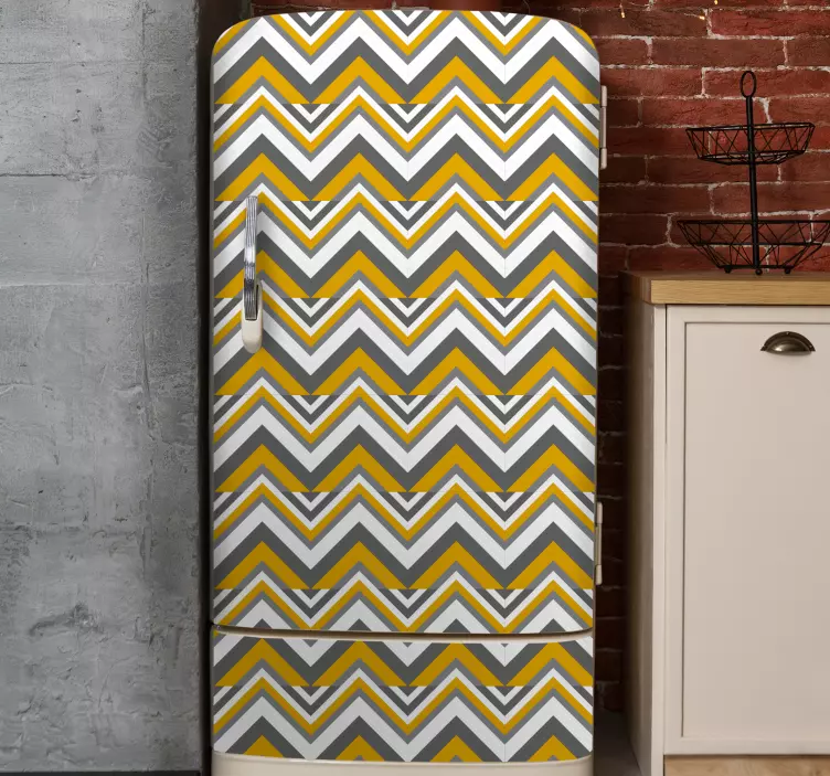 Wprowadź do swojego wnętrza nowoczesny akcent dzięki naszej naklejce na meble w stylu chevron. Ten wyjątkowy projekt wyróżnia się nordyckim stylem, łączącym żółte i szare trójkąty, które tworzą dynamiczny wzór w formie zygzaka. Idealnie sprawdzi się na lodówce czy innych meblach, dodając im charakterystycznego, świeżego wyglądu. Nasza naklejka to nie tylko estetyka, ale także funkcjonalność, która ożywi każde pomieszczenie!