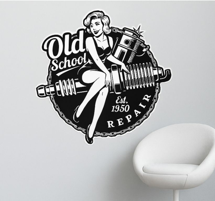 Numer referencyjny: A54109Przedstawiamy Naklejkę na motor pin-up z vintage garażu, która zachwyca swoim unikalnym designem! Projekt graficzny łączy w sobie styl retro z nowoczesnym podejściem, prezentując piękną pin-up girl w otoczeniu klasycznych elementów garażu. Kolory są intensywne, a satynowe wykończenie sprawia, że naklejka nie odbija światła, co pozwala na pełne cieszenie się jej urodą zarówno w pomieszczeniach, jak i na zewnątrz!
