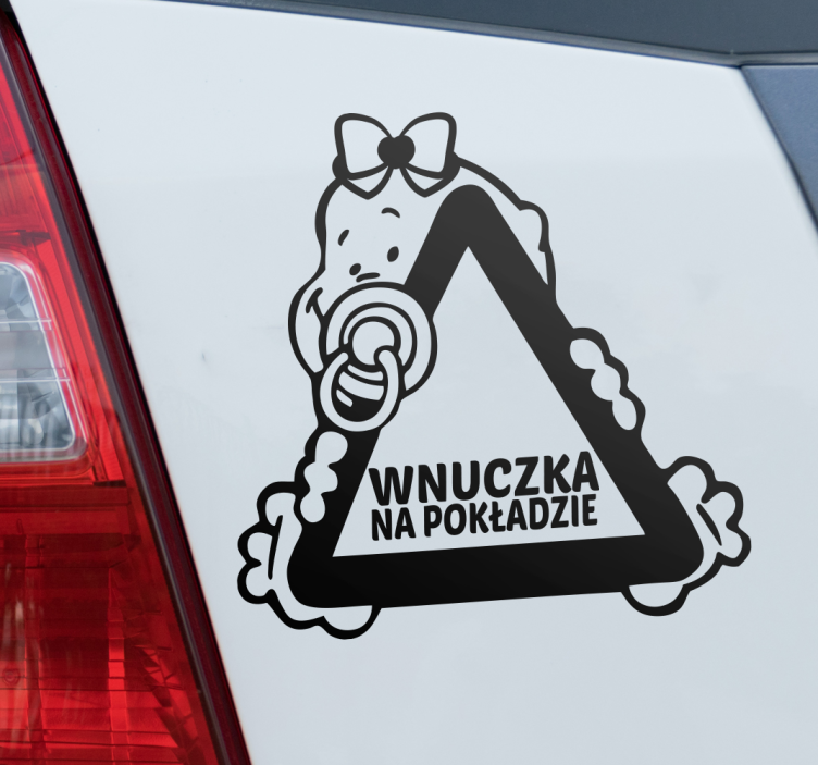 Umieść naklejkę na samochód dziecko w aucie wnuczka na pokładzie na tylnej szybie lub drzwiach pojazdu. Dzięki specjalnemu klejowi, montaż jest szybki i prosty, a efekt końcowy z pewnością Cię usatysfakcjonuje!