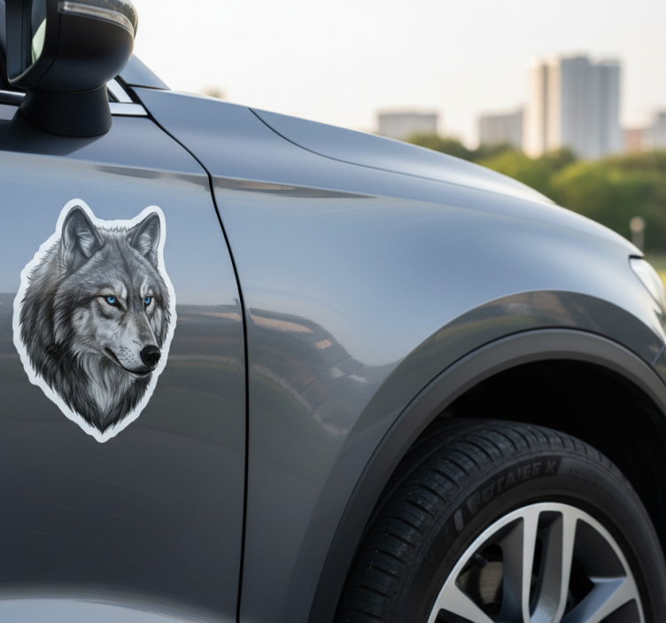 Naklejka na samochód dziki wilk z niebieskimi oczami