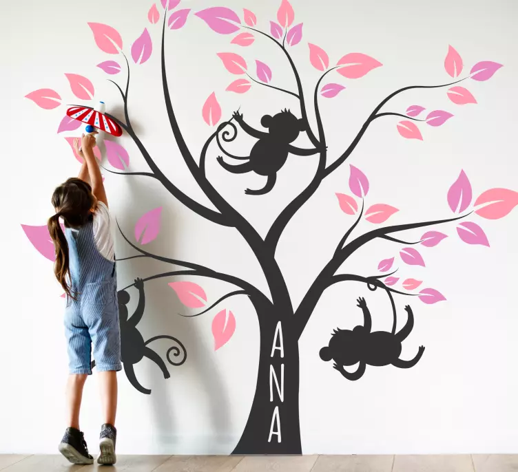 Numer referencyjny: A48289Żywy design z figlarnymi małpkami wiszącymi na drzewie z różowymi liśćmi. Ten personalizowany element dodaje radosnego akcentu do każdego wnętrza, co czyni go idealnym do pokoi dziecięcych. Zachęca do wyobraźni i przygód w radosnej atmosferze.