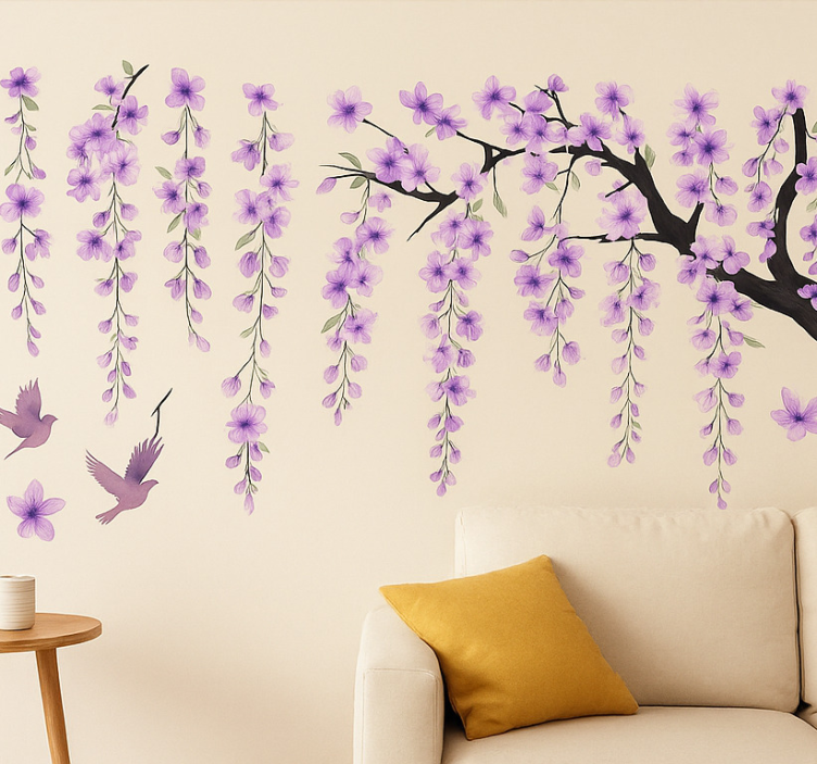 Naklejka na ścianę fioletowe wiszące drzewo