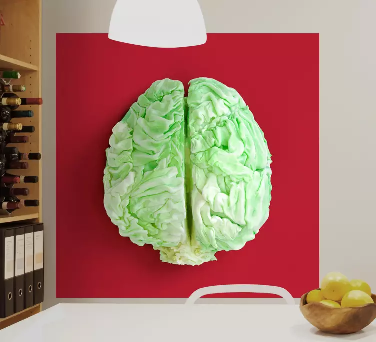 Numer referencyjny: A48104Unikalna reprezentacja, która łączy warzywo z mózgiem, ukazując skomplikowane tekstury liści kapusty. Na tle odważnego czerwonego koloru, ten pomysłowy koncept budzi ciekawość i kreatywność, zwracając uwagę na zabawne połączenie jedzenia z znanymi obrazami.