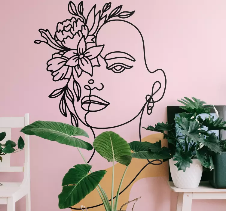 Odkryj naszą naklejkę na ścianę miejsca elegancki portret roślinny, która łączy w sobie piękno natury z minimalistycznym stylem. Projekt graficzny przedstawia kwiat oraz bukiet, tworząc zachwycający lineart z postacią kobiety i jej twarzą. Ten kwiatowy portret to doskonałe połączenie elegancji i prostoty, idealnie wpisujące się w nowoczesne wnętrza. Natura i piękno zamknięte w jednym projekcie sprawią, że Twoje ściany nabiorą wyjątkowego charakteru!