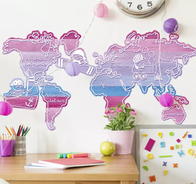 Nasza naklejka na ścianę miejsca przygoda z mapą świata to doskonały wybór dla każdego, kto pragnie dodać swojemu wnętrzu niepowtarzalnego charakteru! Dzięki swojej edukacyjnej wartości, zachęca dzieci do nauki geografii w sposób zabawny i kreatywny. Kolorowy design oraz satynowe wykończenie sprawiają, że mapa wygląda wyjątkowo i nie odbija światła, co pozwala cieszyć się jej intensywnymi barwami przez wiele lat! To świetny sposób na stworzenie inspirującej atmosfery w pokoju dziecięcym!