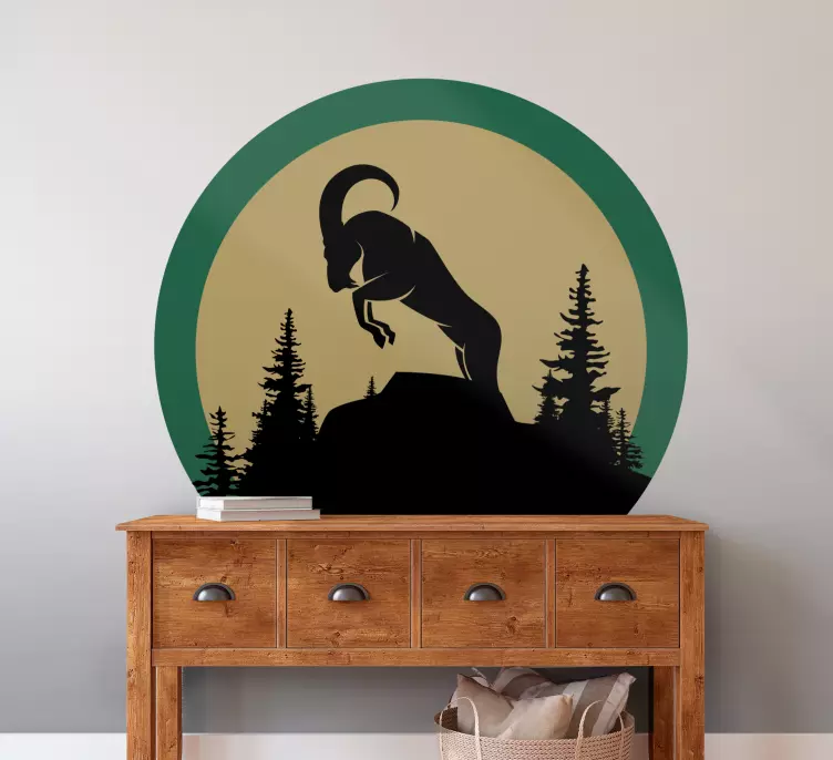 Numer referencyjny: A48507Uderzająca sylwetka górskiej kozy uchwycona w trakcie skoku, otoczona wysokimi drzewami na tle delikatnie kolorowego okrągłego tła. Ten projekt wywołuje poczucie przygody i esencję dzikiej przyrody, idealny dla tych, którzy czerpią inspirację z natury i wielkich przestrzeni na świeżym powietrzu.