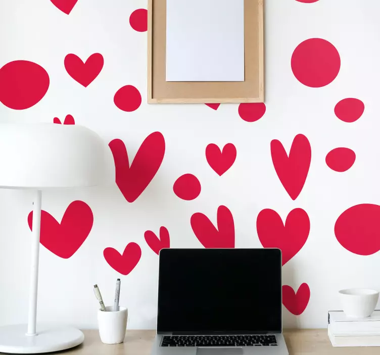Odkryj naszą naklejkę na ścianę miłość urokliwe kształty serc, która wprowadza do Twojego wnętrza wyjątkowy klimat! Graficzny projekt łączy w sobie figlarne kształty serc, kropki oraz romantyczne akcenty, tworząc dekorację, która zachwyca swoją kolorowością i urokiem. Dzięki różnorodnym kiery i gryzmołom, Twoja przestrzeń nabierze nowego blasku, wprowadzając elementy dekoracyjne i pozytywną energię!