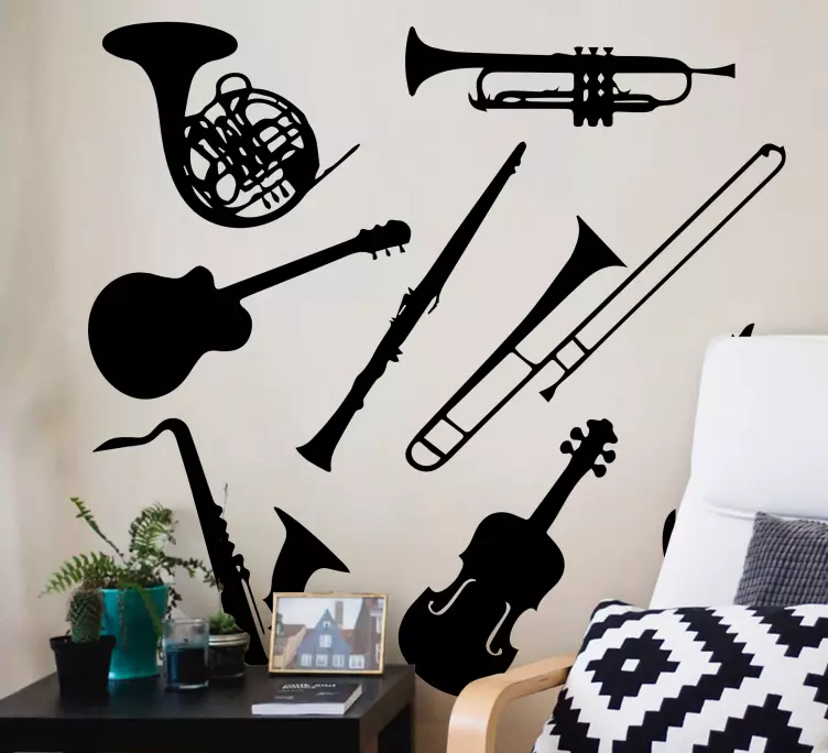 Nasza naklejka na ścianę muzyka kolekcja instrumentów muzycznych to wyjątkowy projekt, który wprowadzi do Twojego wnętrza niepowtarzalny klimat muzyczny! Zestawienie sylwetek instrumentów oraz artystyczne dekoracje stworzą wspaniałą atmosferę, która z pewnością przypadnie do gustu każdemu miłośnikowi muzyki. Dzięki temu produktowi Twoja przestrzeń nabierze charakteru orkiestry, a każdy detal odzwierciedli pasję do muzyki i sztuki.