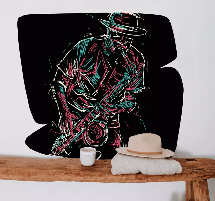 Wybierając naszą naklejkę na ścianę muzyka, inwestujesz w niepowtarzalny element dekoracyjny, który ożywi Twoje wnętrze! Naklejka na ścianę muzyka saksofonisty grającego to nie tylko piękny obraz, ale także wyraz Twojej pasji do muzyki. Dzięki satynowemu wykończeniu, kolory są intensywne i żywe, a brak refleksów sprawia, że obraz wygląda doskonale z każdej perspektywy. Nasz produkt jest trwały, odporny na działanie wody, a jego aplikacja jest niezwykle prosta! Dostosowujemy rozmiary do Twoich potrzeb, co czyni go idealnym wyborem dla każdego miłośnika jazzu!