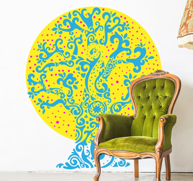 Numer referencyjny: A46984Skomplikowany wzór drzewa ozdobiony złożonymi motywami i żywymi kolorami, umieszczony na jasnym tle. To dzieło sztuki ucieleśnia życie i kreatywność, czyniąc je fascynującym punktem centralnym w każdej przestrzeni. Kręte kształty i wzory symbolizują wzrost i witalność, zachęcając do podziwu.