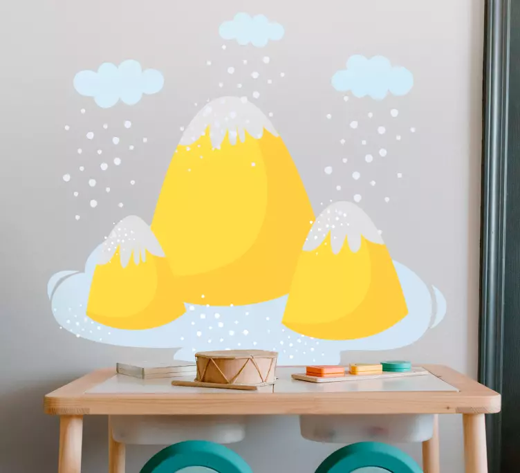 Odkryj niesamowity świat przyrody z naszą naklejką na ścianę natura Żółte szczyty górskie, która zachwyca swoją grafiką! Ta piękna ilustracja przedstawia majestatyczne góry pokryte śniegiem, w otoczeniu delikatnych chmur. Żółte szczyty górskie w połączeniu z naturalnymi motywami tworzą kapryśny i urzekający obraz, który ożywi każde wnętrze. Zastosowanie takiej dekoracji sprawi, że poczujesz się jak w sercu górskiej przyrody, nawet będąc w domowym zaciszu!