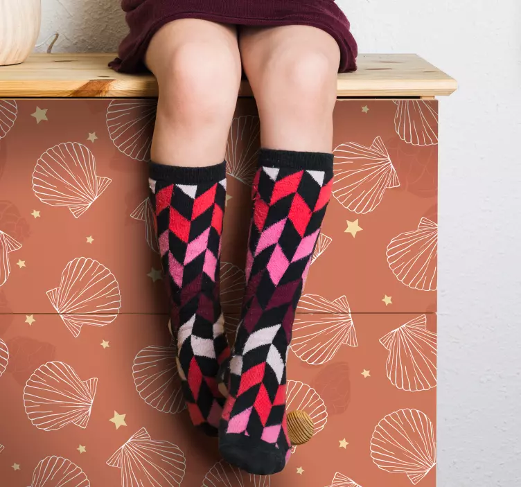 Odkryj piękno i elegancję naszej Naklejki na ścianę ornament tło z wzorem muszli, która wnosi do każdego wnętrza niepowtarzalny klimat. Projekt graficzny zachwyca delikatnymi muszlami oraz kształtami gwiazd, tworząc wyjątkowy wzór idealny do aranżacji przestrzeni w stylu plażowym. Naturalne kolory ziemiste harmonijnie współgrają z meblami, nadając pomieszczeniu świeżości i lekkości, a każdy detal jest starannie przemyślany, by cieszyć oko przez długie lata.