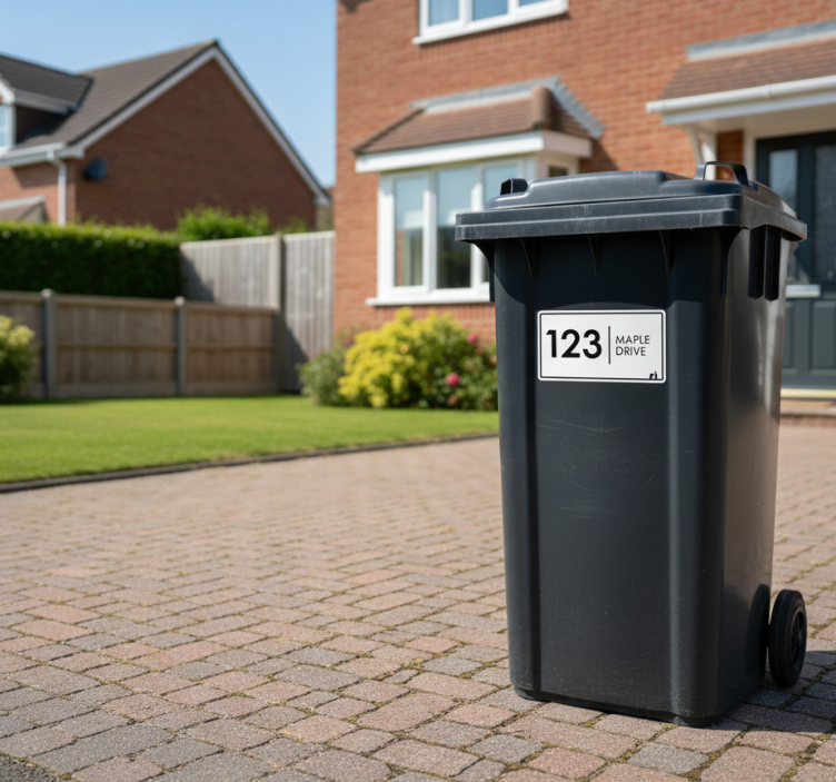 Numer referencyjny: A54303Praktyczny kosz na odpady znajduje się na starannie wybrukowanym podjeździe, otoczony zadbanym krajobrazem. Kosz ma wyraźną etykietę identyfikacyjną, co poprawia organizację w otoczeniu mieszkalnym. Uosabia funkcjonalność, jednocześnie uzupełniając estetykę domu, co ułatwia zarządzanie odpadami dla mieszkańców.