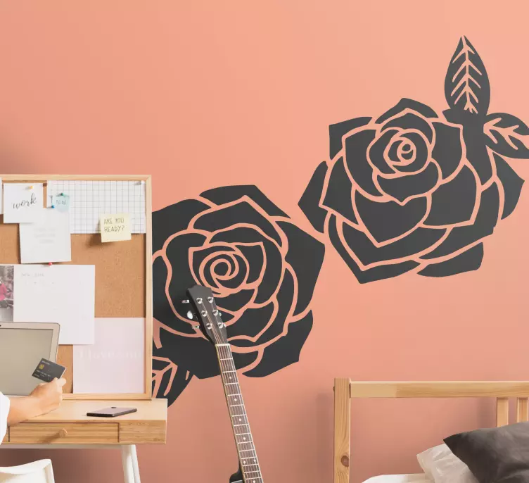 Odkryj niezwykłą naklejkę na ścianę rośliny bukiet eleganckich róż, która doda elegancji każdemu wnętrzu! Nasz projekt graficzny zachwyca kwiatowymi sylwetkami róż, które w połączeniu z naturalnymi elementami tworzą harmonijną całość. Czarna kolorystyka sprawia, że wzór jest nie tylko nowoczesny, ale również ponadczasowy. Liście delikatnie otaczają bukiet, tworząc przyjemny dla oka efekt, który wprowadza do Twojego domu powiew świeżości.