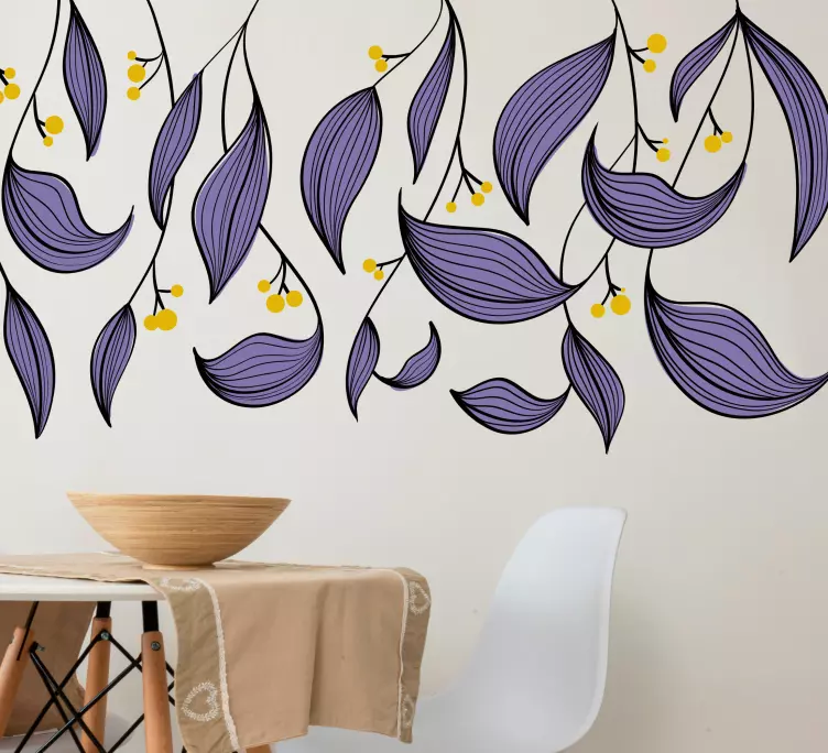 Naklejka na ścianę rośliny wzór fioletowych liści to prawdziwa uczta dla oczu! Ten elegancki projekt, który zdobią wiszące liście oraz kwiaty, emanuje naturalnym pięknem. Fioletowe odcienie dodają kolorowego akcentu, sprawiając, że każda przestrzeń nabiera niepowtarzalnego charakteru. Dzięki swojemu dekoracyjnemu stylowi, naklejka doskonale wpisuje się w nowoczesne wnętrza i wprowadza do nich odrobinę natury!