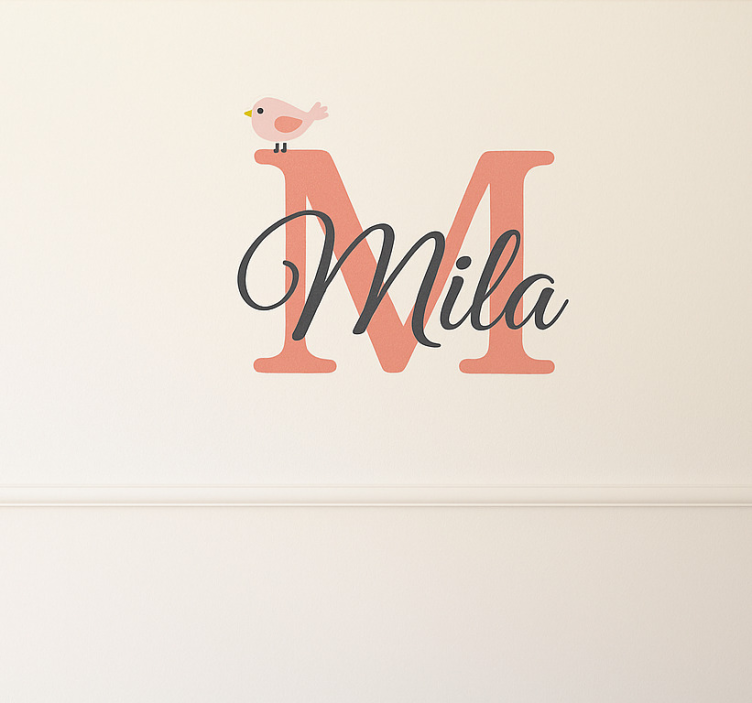 Naklejka na ścianę słodka ptaszyna z inicjałem