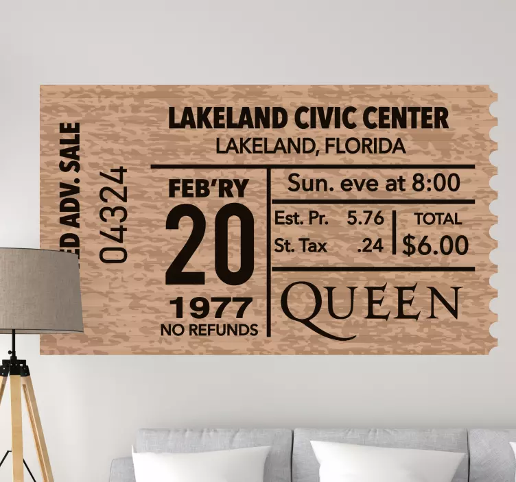 Numer referencyjny: A49733Bilet z epoki z Lakeland Civic Center, prezentujący wydarzenie zespołu Queen z 20 lutego 1977 roku. Ten projekt podkreśla historyczne znaczenie koncertów na żywo, eksponując szczegóły biletu, takie jak lokalizacja, data i ceny, co przyciąga miłośników muzyki oraz kolekcjonerów.