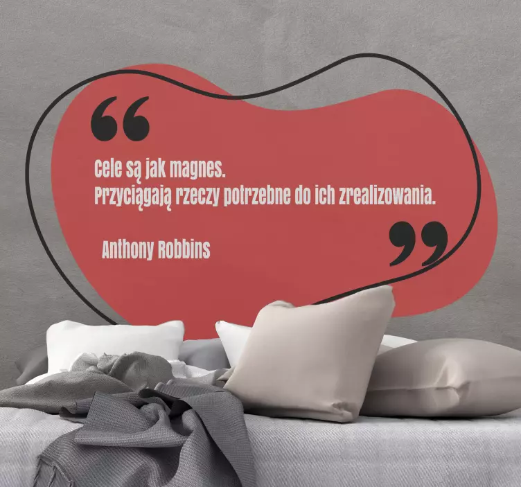 Ta inspirująca naklejka z tekstem jest idealna dla osób poszukujących motywacji i inspiracji. Cytat Tonny'ego Robbinsa jest wpisany na ikonicznym czerwonym tle wiadomości, co dodaje mu niepowtarzalnego charakteru.