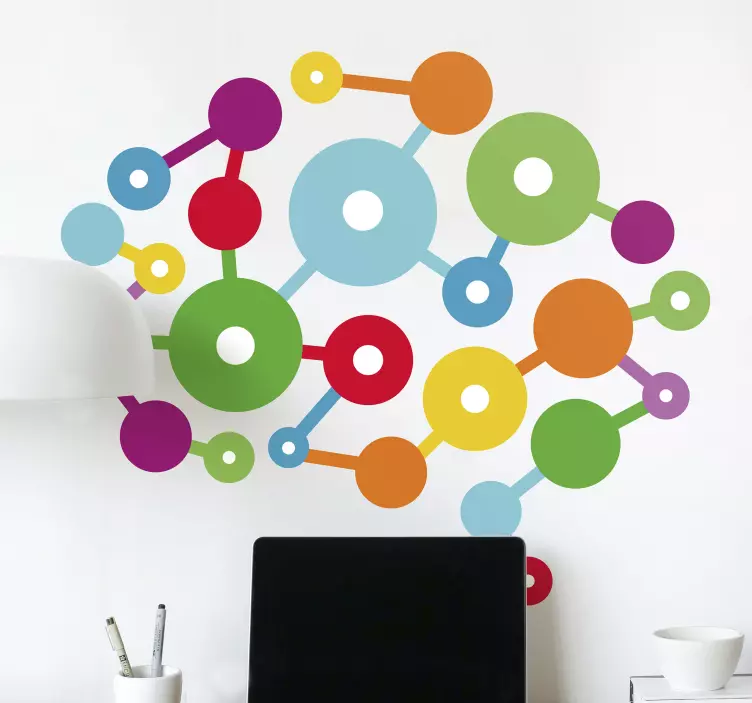 Numer referencyjny: A51213Ten żywy projekt zawiera szereg okrągłych kształtów połączonych liniami, tworząc zabawną i dynamiczną wizualizację. Użycie różnych kolorów dodaje energii, co sprawia, że jest odpowiedni do współczesnych przestrzeni, promując kreatywność i inspirację w każdym otoczeniu.