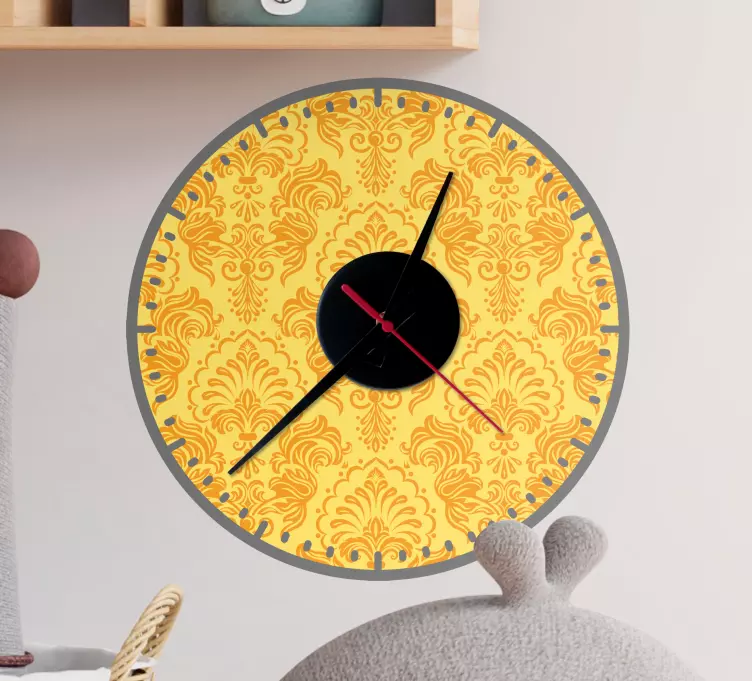 Przedstawiamy elegancką kwiatową naklejkę na ścianę zegar, która łączy w sobie styl i funkcjonalność. Jej zachwycający wzór z motywem kwiatowym na tle o żółtym odcieniu przyciąga wzrok i doskonale wpisuje się w nowoczesne trendy dekoracyjne. Okrągły kształt zegara wprowadza harmonię do każdego wnętrza, a adamaszkowe detale dodają mu wyjątkowego uroku. Ta naklejka to nie tylko ozdoba, ale i praktyczny czasomierz, który umili każdą chwilę.