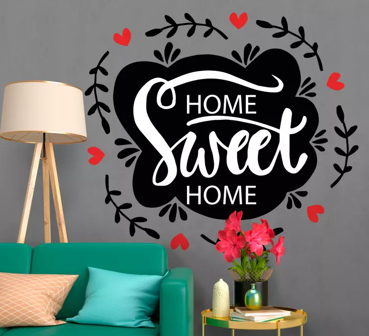 Numer referencyjny: A48557Fraza 'Home Sweet Home' jest pięknie przedstawiona za pomocą eleganckiej typografii otoczonej urokliwymi winoroślami i sercami. To wyrażenie przekazuje ciepło i komfort, idealne do stworzenia przytulnej atmosfery w każdym wnętrzu.