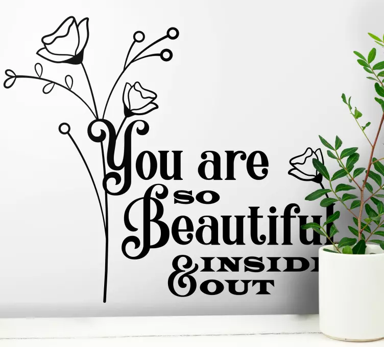 Odkryj naszą wyjątkową naklejkę na ścianę znane cytaty jesteś piękna w środku, która wprowadzi do Twojego wnętrza inspirujący klimat! Projekt graficzny cieszy oko kwiatowym motywem, łączącym piękno natury z pięknym przesłaniem. Tekst, który znajdziesz na tej naklejce, ma za zadanie inspirować i dodawać energii, przypominając o wewnętrznym pięknie każdej osoby. To idealna dekoracja, która nie tylko zdobi, ale również motywuje!