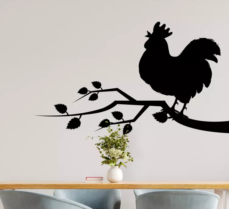Naklejka na ścianę zwierzęta z farmy kogut na gałęzi