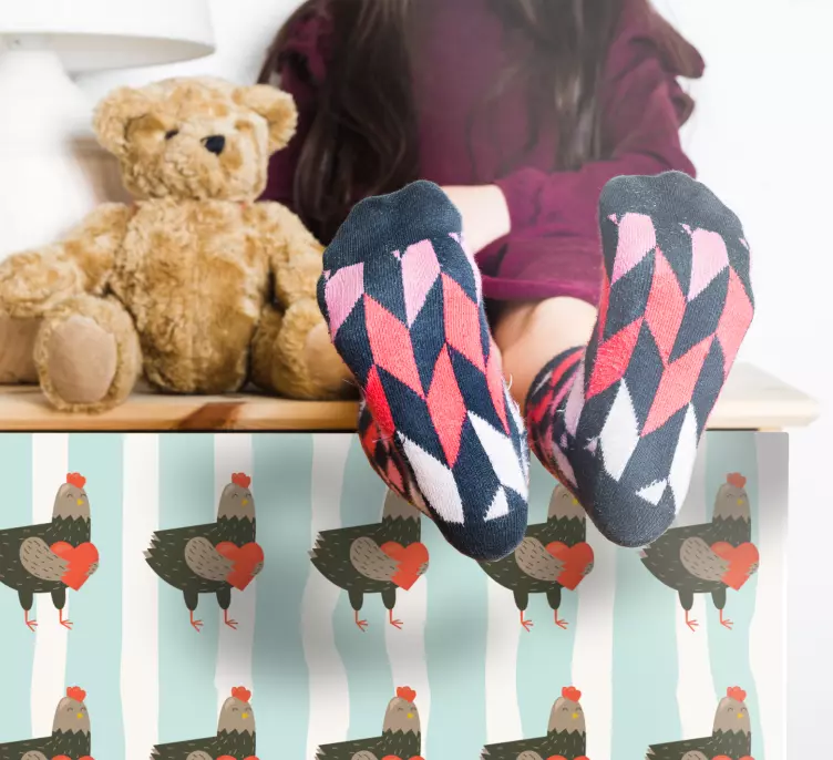 Numer referencyjny: A49031Urokliwy wzór z urokliwymi kurczakami i sercami, zaprojektowany, aby wprowadzić zabawny klimat do każdego otoczenia. Projekt prezentuje żywą mieszankę kolorów, która podnosi nastrój i dodaje radosnego akcentu, idealny dla tych, którzy cenią sobie fantazyjny styl.