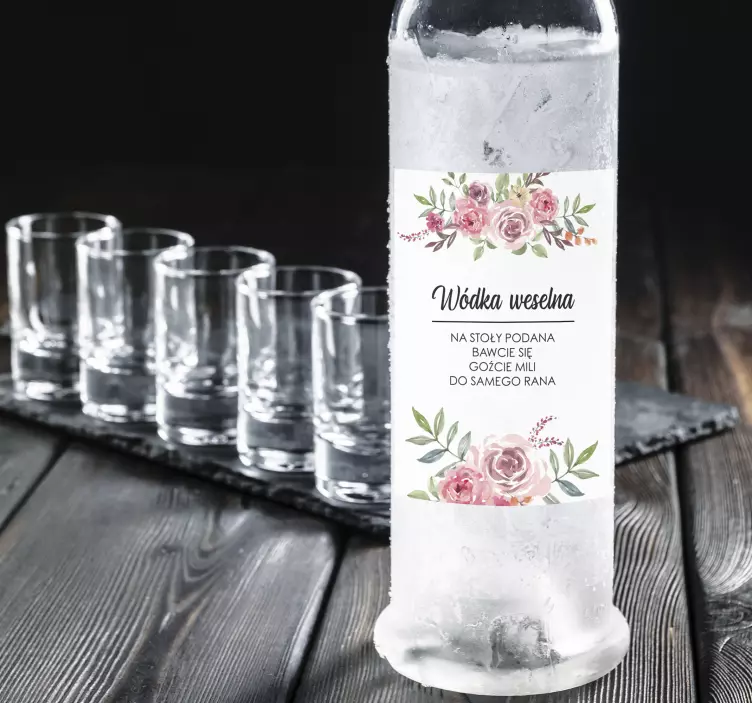 Numer referencyjny: A19306Naklejki na wódkę weselną z kwiatkami - idealna ozdoba stołu na Twój wyjątkowy dzień!